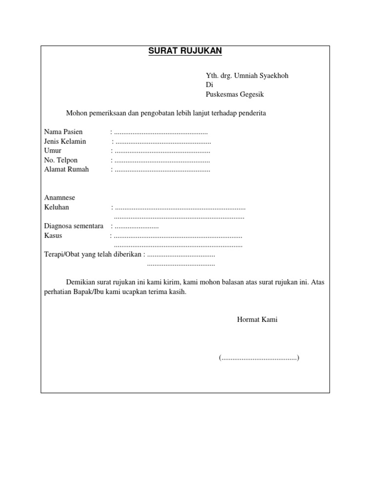 Contoh Surat Rujukan Dari Puskesmas Ke Rumah Sakit
